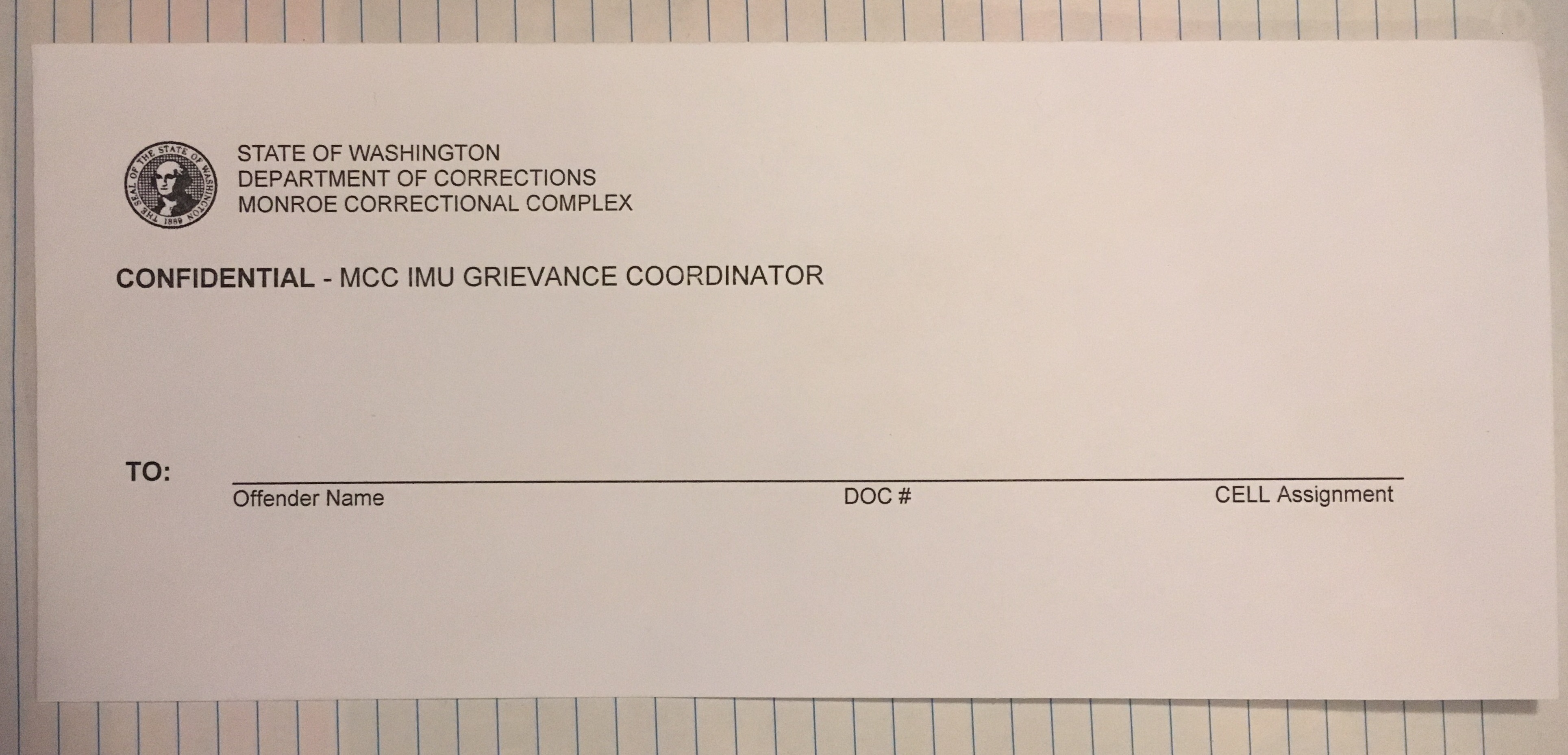 - Monroe Correctional Complex IMU Grievance Envelope (2016)